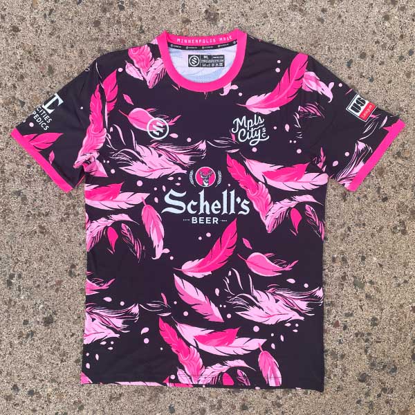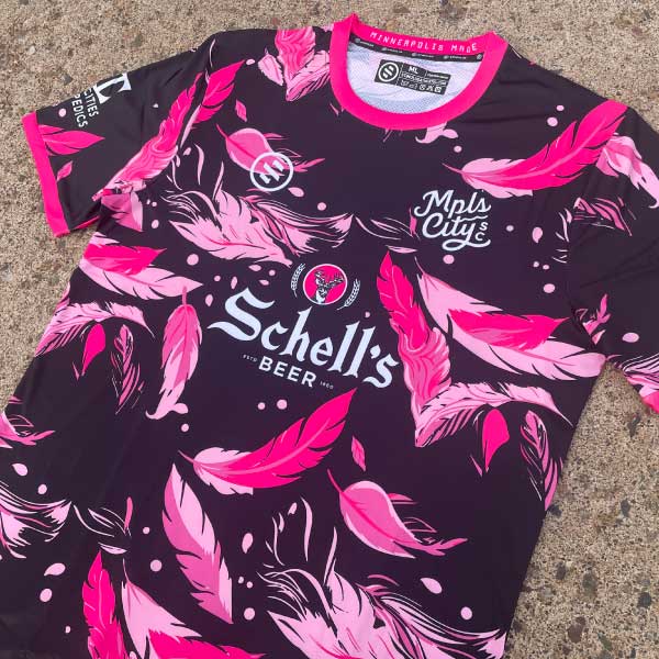 The Feather-rific Minneapolis City away shirt, featuring new sponsor Schell's Brewing. It's sure to be a classic. This is the official shirt, produced by Stimulus Athletic (no replica fabric here).