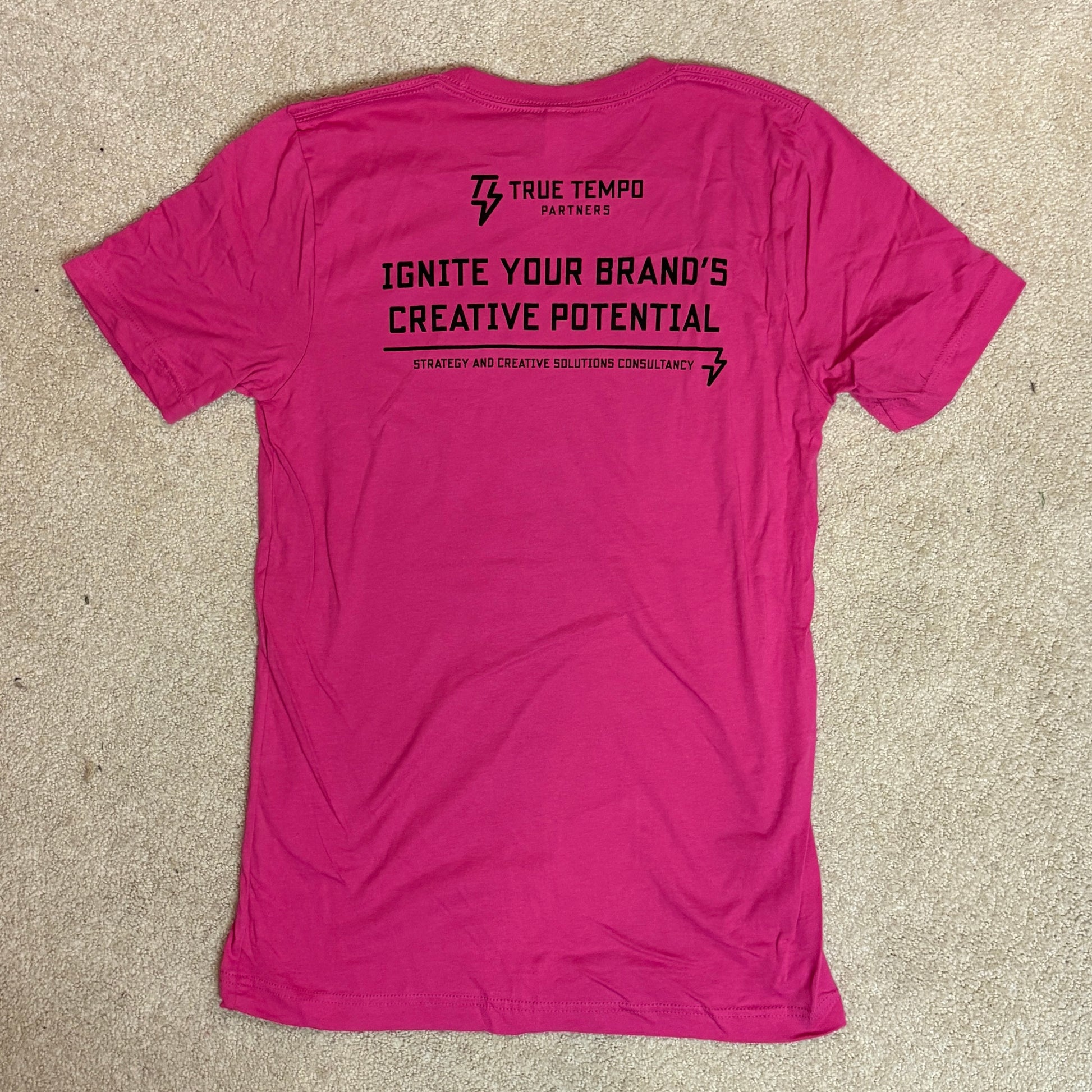 Super soft Bella Canvas tee in the world's greatest shade of pink. Throwback logo on the front. A word from our sponsor True Tempo on the back.